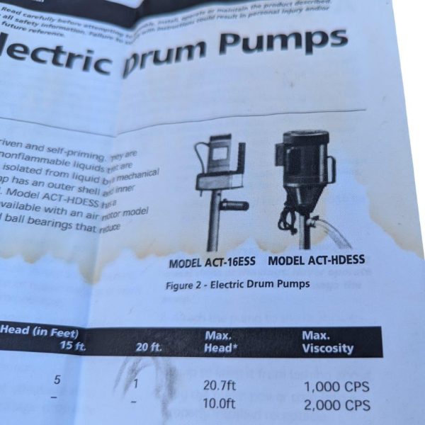 - The paper manual you have lists Max Head = 10.0 ft (water) and Max Viscosity = 2000 cP. Your head figure matches the factory table (10.0 ft), while the viscosity value differs from the PDF, which shows 500 SSU for ACT-HDESS.