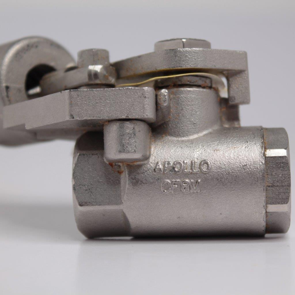 The Apollo Conbraco 1/4-Inch MPT Ball Valve 7650101 with a spring return handle is a high-performance valve designed for demanding industrial applications. Built from CF8M (316 stainless steel) with MPTFE seats and seals, this valve provides excellent resistance to corrosion and wear. Rated for 2000 WOG (Water, Oil, Gas), it is suitable for high-pressure systems, ensuring reliable shutoff and flow control. The spring return handle (“dead man handle”) automatically returns to the closed position, offering enhanced safety and control.