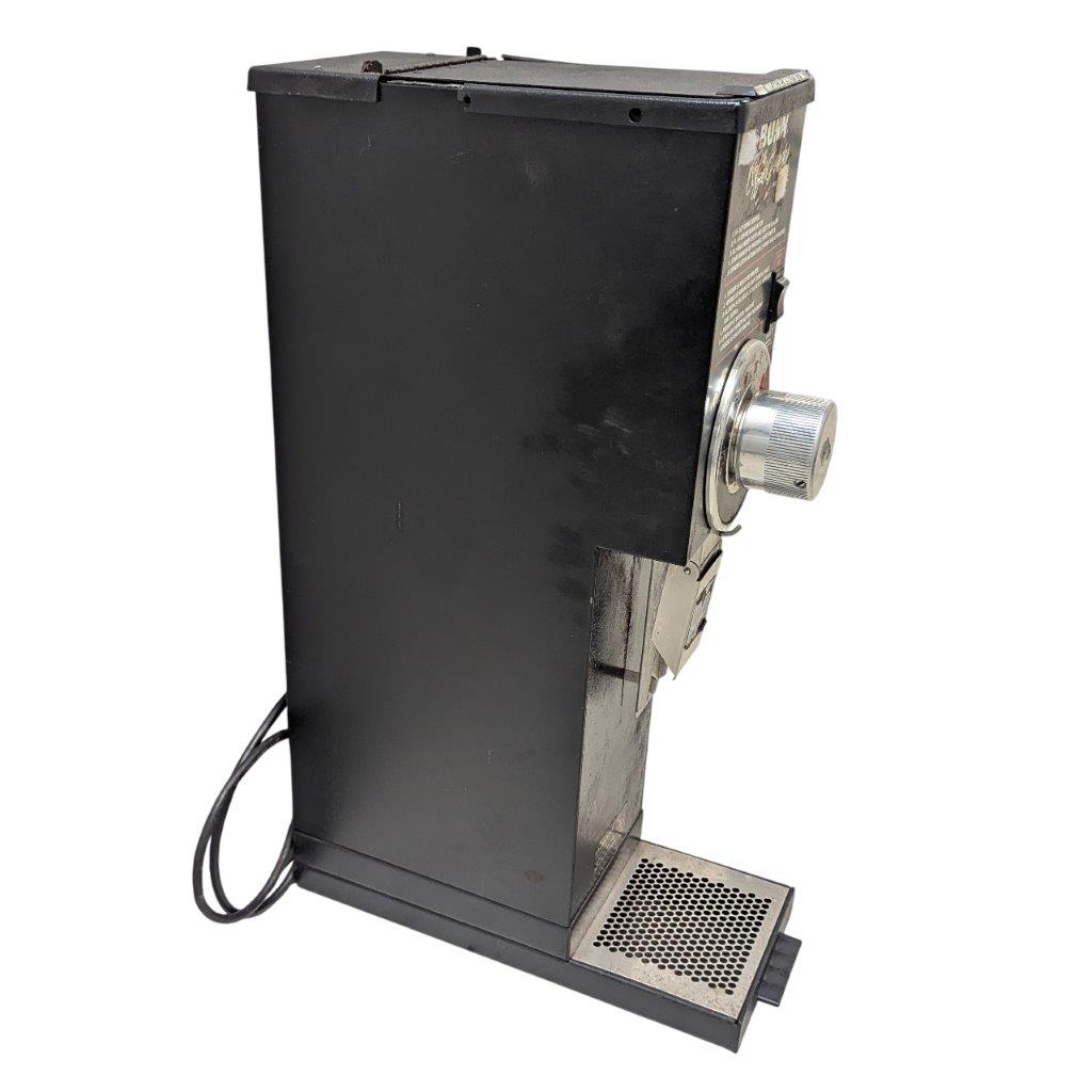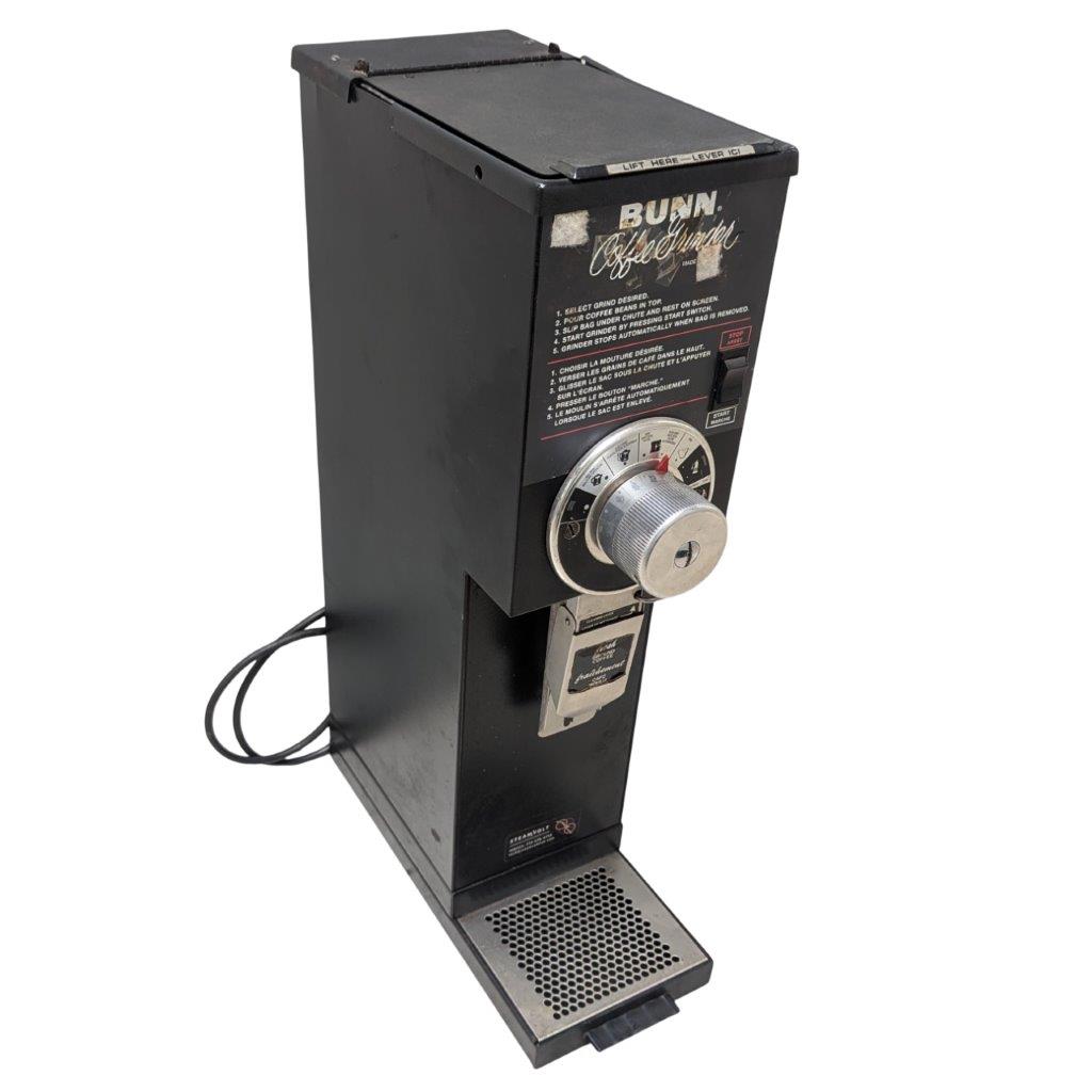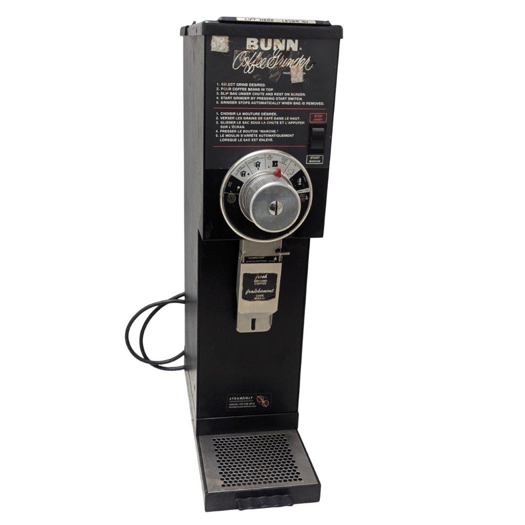 bunn g3 hd bulk coffee grinder; 3 lb retail grinder 120v; model 22100.6000; commercial burr grinder with bag clamp; grocery store coffee grinder; device to grind coffee beans; spice grinder commercial; motor reset coffee grinder; lr57164 wmsc listed; used bunn grinder needs cleaning