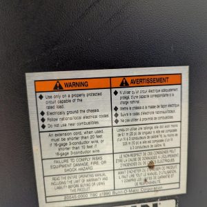 Condition: Used. Tested—fully functional. Previously used for coffee and spices; may need cleaning prior to food use. Factory safety decals present. Power plug works as is shows distress/wear—inspect/replace plug as needed. Includes built-in motor reset on side panel. Normal cosmetic wear from service.