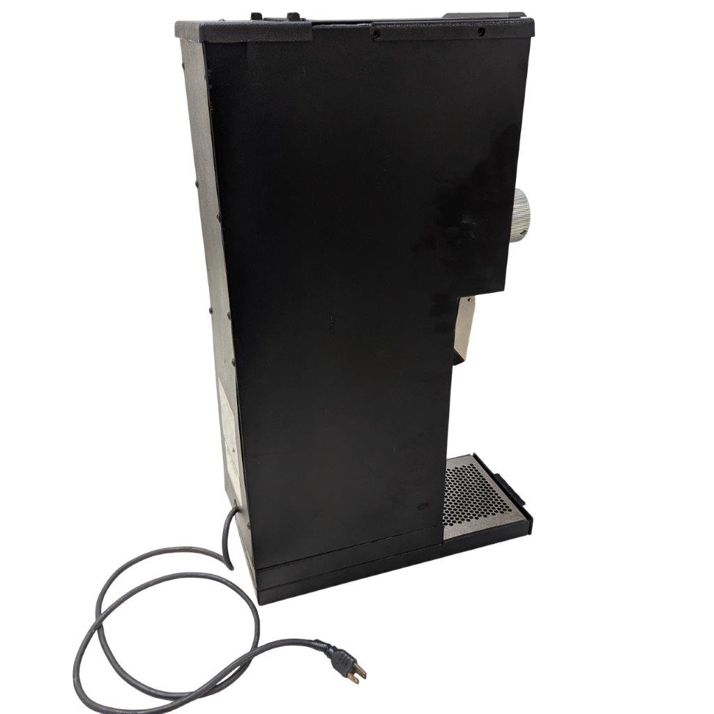 Built for busy cafés and grocery bulk stations, the Bunn G3 HD is a commercial 3-lb (1.36 kg) bulk grinder with a high-torque motor and large burr set for fast, repeatable grinds from coarse (percolator/press) to fine (drip/espresso range). A front grind selector plate provides preset positions; the tall receiving spout and bag clamp make self-serve or attendant operation simple. This unit is 120V, 9A, 60 Hz, 1-phase (two-wire + ground) and carries Canadian/US compliance identifiers (LR57164). For service, a manual motor reset button is provided.