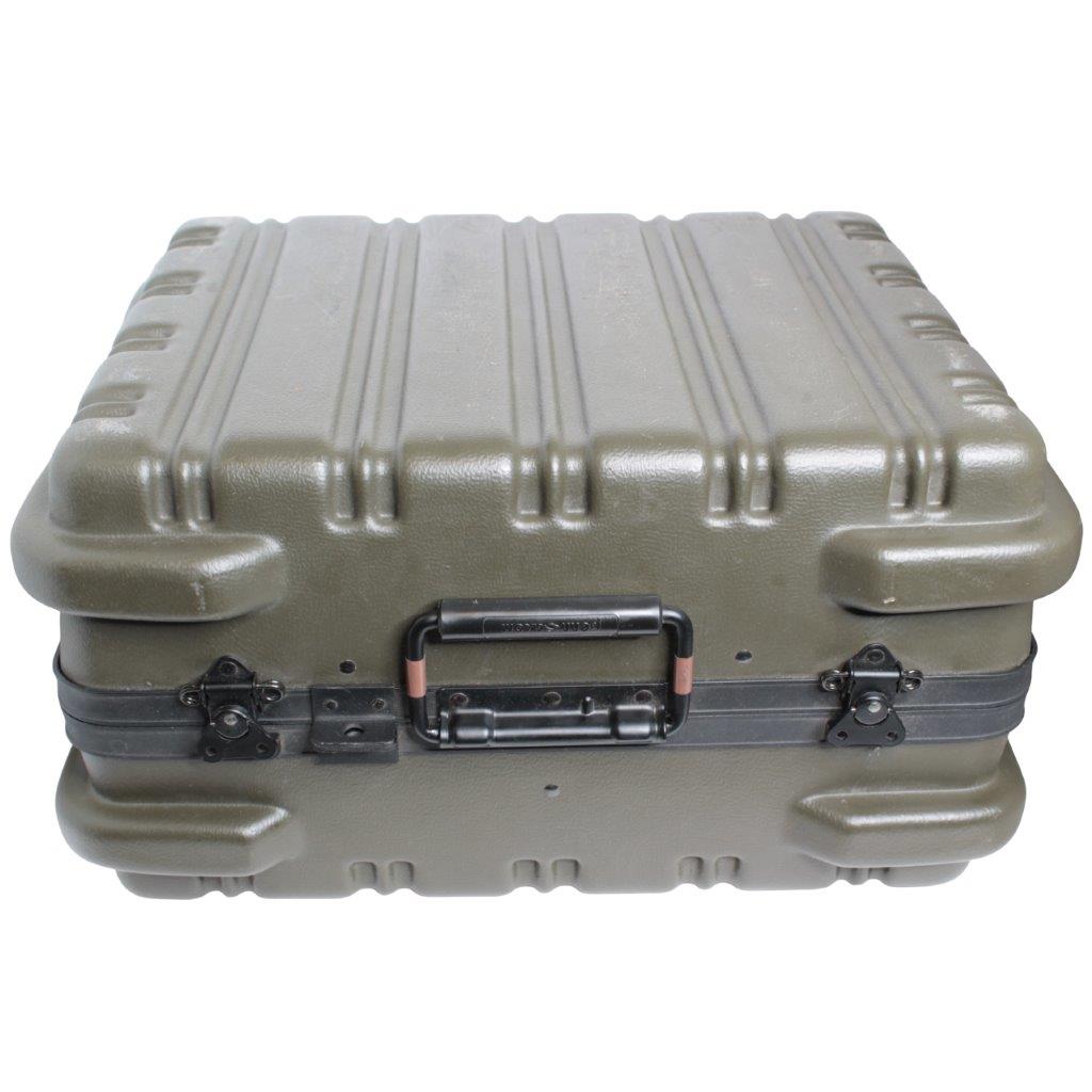 Military-Ready Standard Electronic Tool Case, HDPE rugged chassis, 18×15×9 in pallet capacity, spring-loaded handle, foam-customizable lower bay, -40°F to +185°F, outer approx. 19.5×10.25×16.5 in