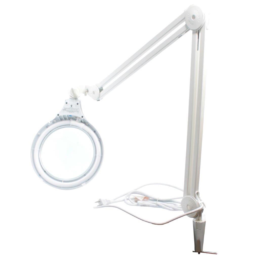 - 7 inch magnifying lamp, clamp-on magnifier light, desk clamp magnifier, circular T5 ring lamp, inspection magnifier lamp, task light with magnifier, electronics soldering magnifier, workstation magnifier, device to magnify small details