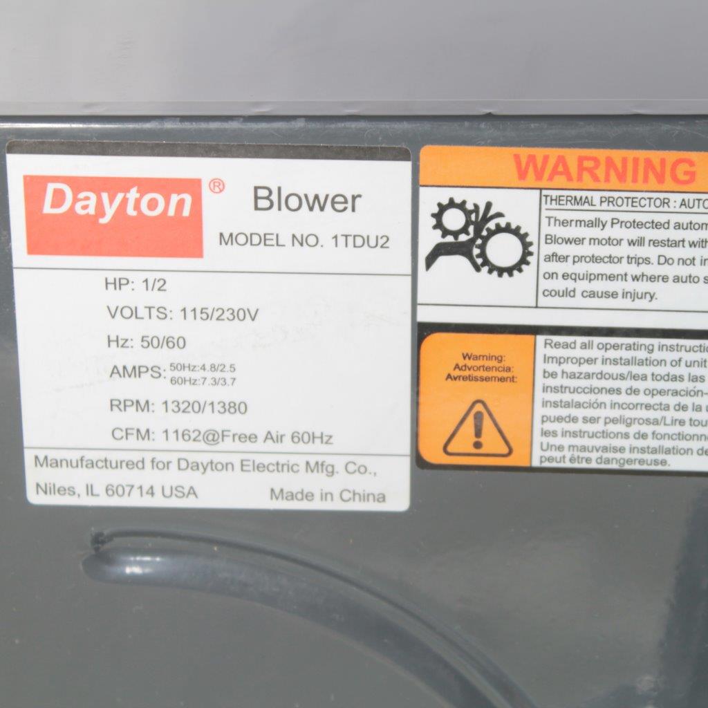Be the first to review “Dayton 1TDU2 PSC Direct-Drive Centrifugal Blower 1/2HP 115/230V 1162 CFM w/ Dual-Speed RPM”