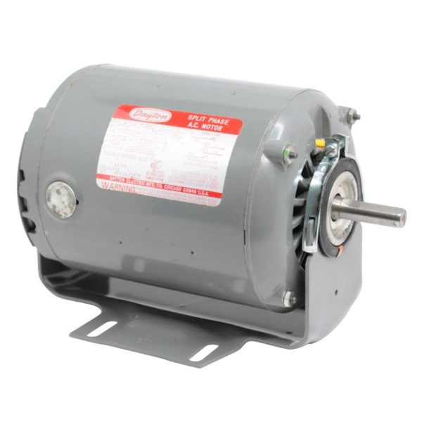 DAYTON 6K030 Split-Phase Belt-Drive HVAC/R Motor, 1/3 HP, 115V, 1725 RPM, 56Z Frame, ODP, Ball Bearings, 1/2″ × 1-1/2″ Shaft (flat), Cradle Base, SF 1.35, Auto Thermal, Reversible CCWSE/CWLE — includes 1/2″→5/8″ bushing