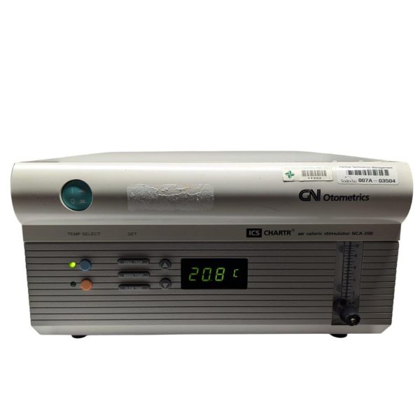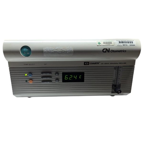 air caloric stimulator; device to deliver controlled warm/cool air to ear; vestibular caloric testing unit; ENG VNG caloric irrigator; ICS CHARTR NCA-200; otoneurology equipment; dizziness evaluation system; caloric nystagmus induction; bithermal air irrigations; monothermal screening; otoscope visualization head; Welch Allyn 21700; otology ENT audiology vestibular; clinic vestibular lab equipment; Natus Otometrics ICS Chartr VNG