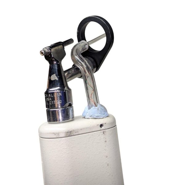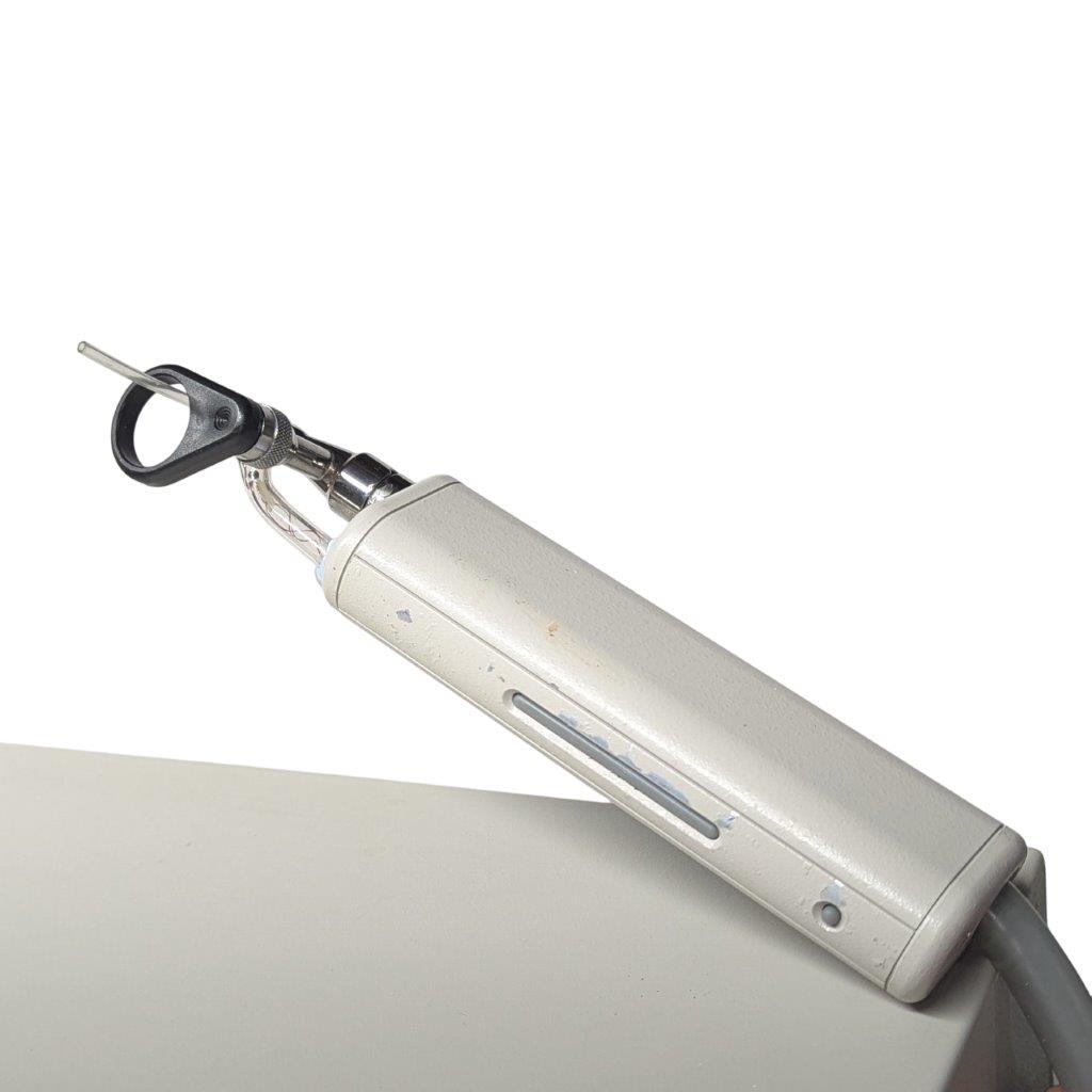 Condition: Used — pulled from a working environment. Remote not included. Unit powers, buttons respond, and airflow/temperature controls actuate, but we did not complete full clinical calibration. Right-side regulator small knob is cracked (see photos). Includes handpiece and a Welch Allyn 21700 otoscope head (for ear canal visualization). Expect normal signs of prior use.