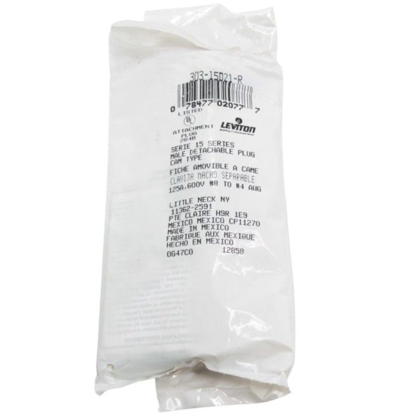 - Series / Type: Leviton 15-Series cam-type, detachable male plug
