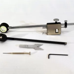 The Lietz 3651-30 Zero Setting Device consists of a precisely machined circular plate with a graduated scale, a telescope, and a leveling bubble. The telescope is mounted on the circular plate and can be rotated around its vertical axis. The circular plate is graduated in degrees, with zero marking the reference point. The leveling bubble is used to ensure that the device is accurately leveled before taking measurements.