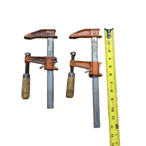 Set of 4 Steel Bar Clamps with Wooden Handles 16″, 12″, and 10″ Clutch Style Clamps