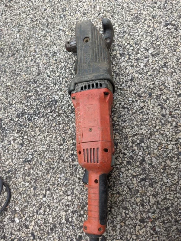 Related: Milwaukee, heavy-duty, corded, right angle, drill, large holes, powerful, 13-amp motor, two-speed gearbox, all-metal gear case, diaphragm, comfortable grip handle, Quik-Lok cord, side handle, high-torque.
