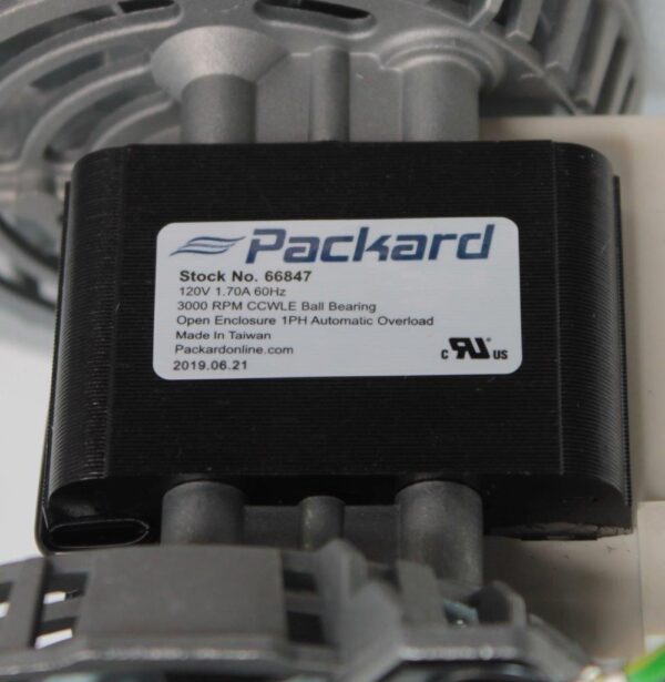 Packard 66847 Draft Inducer Blower Motor, 120V shaded-pole C-frame, 28W, 3000 RPM, 1/30 HP, ball bearings, open enclosure, includes gasket, direct replacement for Rheem 70-22162-81 and many OEM numbers