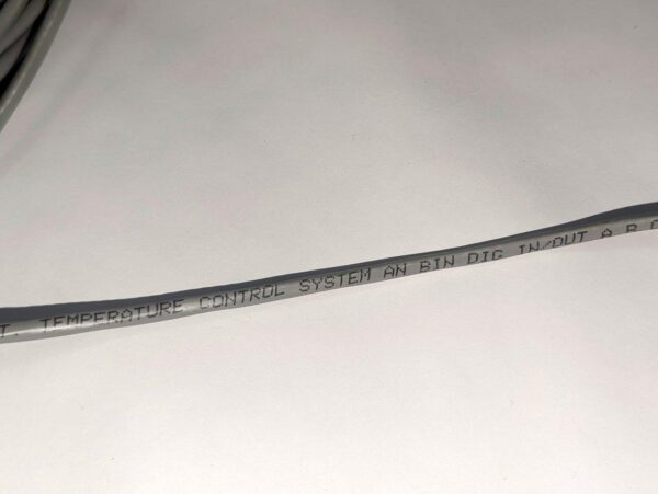 This shielded 20 AWG cable is designed for low-voltage applications, suitable for CL3R (Class 3 riser) and CMR (communications riser) installations. With a 75°C temperature rating, this cable can safely operate in environments requiring robust fire resistance and shielding to minimize interference. The markings suggest it is intended for temperature control systems or similar applications involving digital input/output connections.
