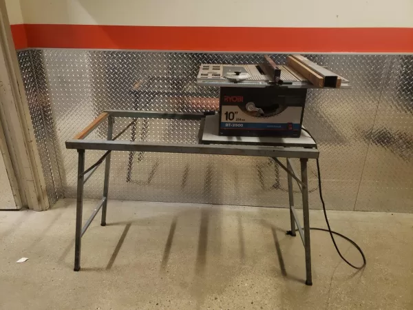 Rip Fence: The table saw is equipped with a rip fence for accurate and straight cuts along the length of the material.