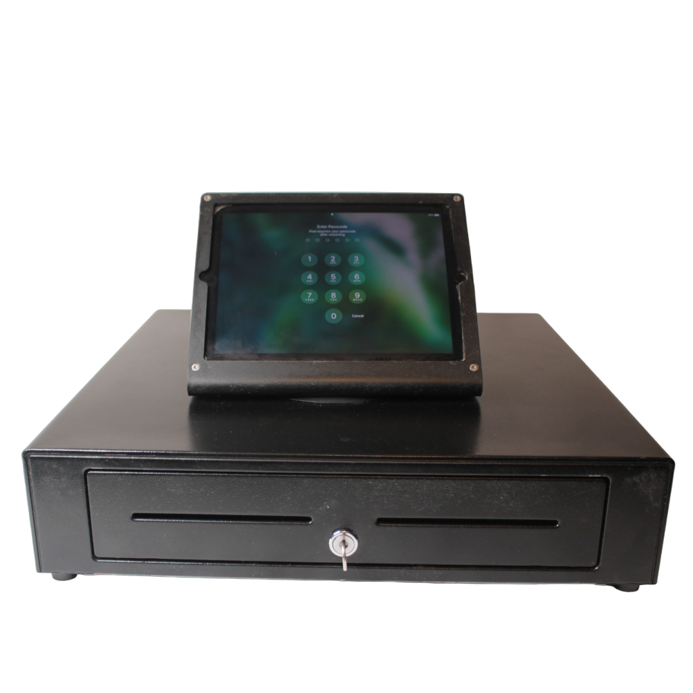 Touch Dynamic CD-BL-2000 Cash Drawer Register with rotating iPad Black Swivel Pedestal POS Tablet Stand Cash Register Drawer Box Works Compatible Epson/Star POS Printers
