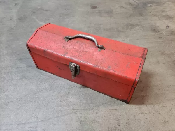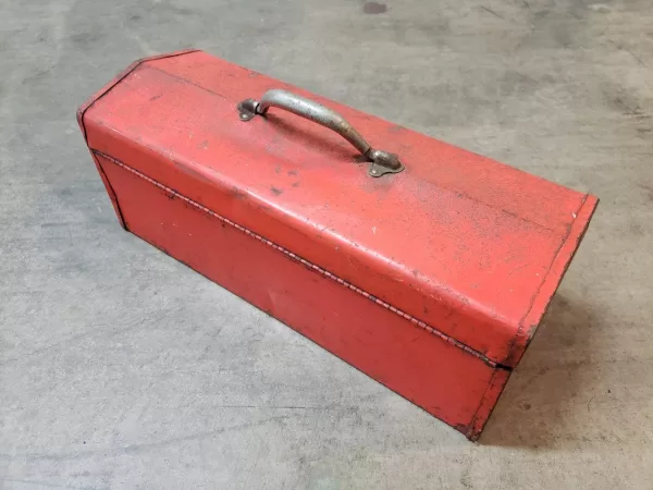 Vintage RED Metal Tool Box 19″ L x 7″ W x 7.25″ T & Extra Accessories